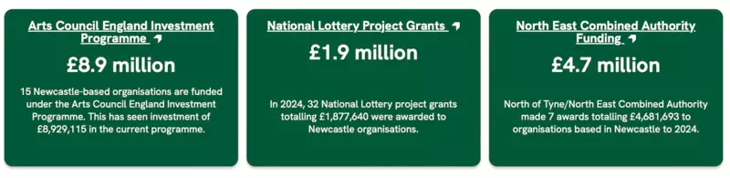 Newcastle-based culture organisations receive funding from a variety of different sources, with the exact profile varying widely between organisations.
