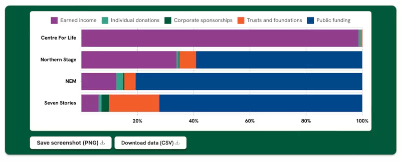 For example, we saw that organisations like Centre for Life rely heavily on privately earned income, while others like North East Museums are mostly publicly funded. Having access to this information is essential when making investment decisions for the region.