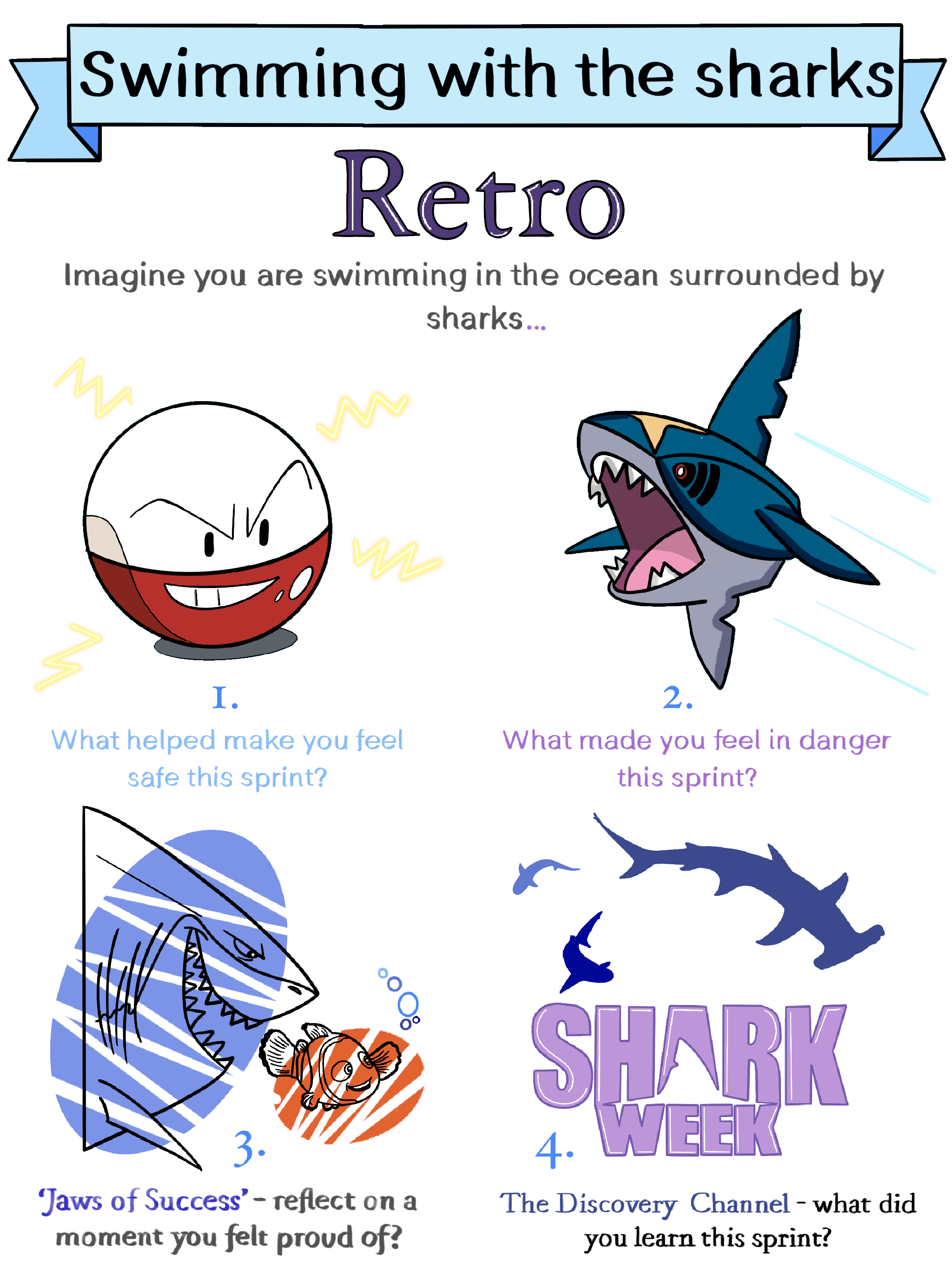 As a Delivery Manager, it's important to reflect on the past sprint to identify areas of improvement and recognise successes. And what better way to do that than with a shark-themed retrospective?